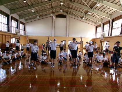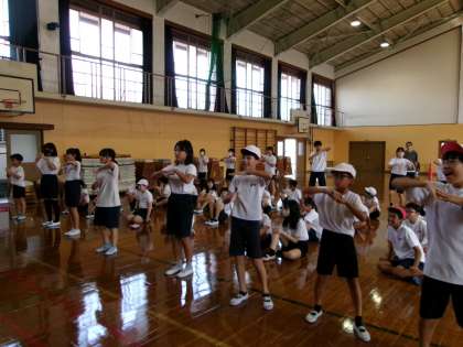 今日は、ダンスをして互いに見合っていました。動きが大きいと褒められている子どももいました。