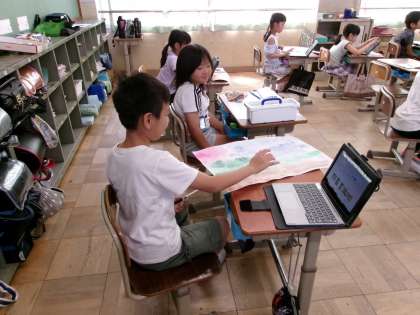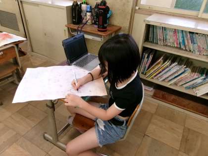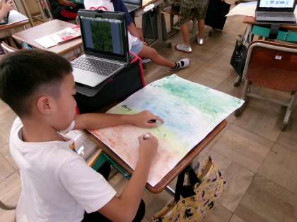 なすの花や葉、実などの画像を検索して、それを資料にして、絵を描いていました。どんな絵が仕上がるか楽しみですね。
