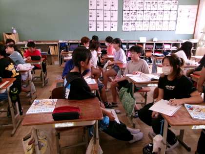 夏休みにあったことを友だちに英語で話していました。どのペアも積極的に話していました。