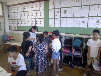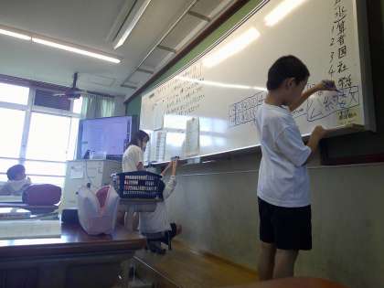 文章問題の中で,公約数を探して,交流していました。授業を見に来た実習生にも自分の考えを伝えている5年生でした♪