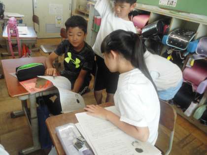 子どもたちから物語を読んででた疑問をもとに授業を進めています。登場人物同士の関係に注目して読み解いていきました。