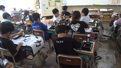 今回の毛筆は「力」!前回の左はらいに「おれ」と「はね」が加わっています。だんだん筆使いが上手になってきました。