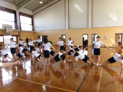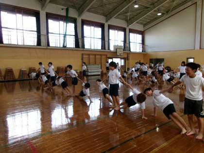 3人技に挑戦していました。早く涼しくなって、外での練習がしたいです。