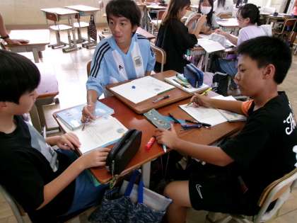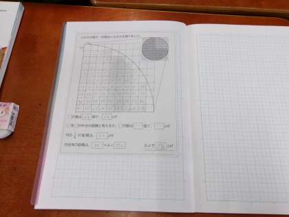 円の中に描かれた方眼を使って、円のだいたいの面積を求めようとしていました。