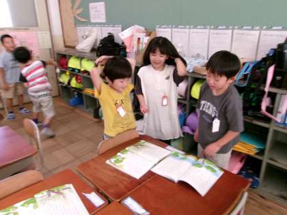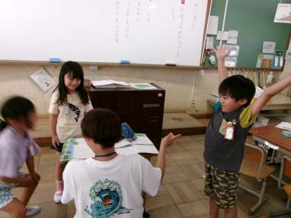 グループに分かれて音読練習。楽しそうでした。