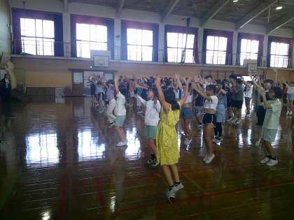 全校ダンスの練習を行いました。何度も練習して完璧ですね♪