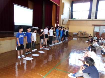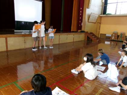 今日の児童集会は、まず飼育委員会からの発表がありました。スライドや○×クイズを取り入れた良い発表でした。