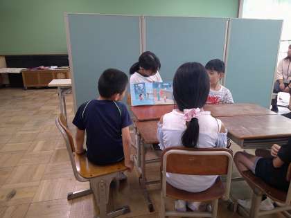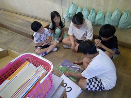 6年生は本を読み、下級生は聞く、