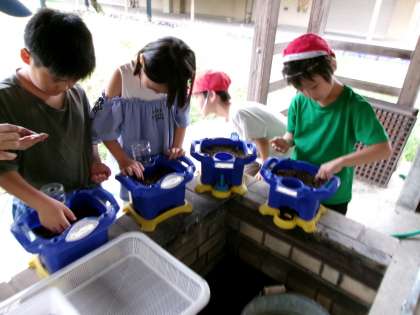 2年生がラディッシュの種を植えていました。「二十日大根とも言うんやで。」と教えてくれました。