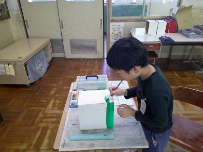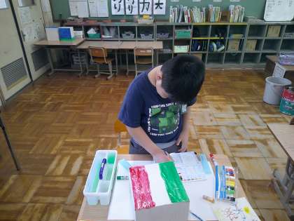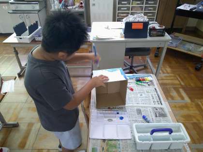 先ずは空き箱に色を塗りました。