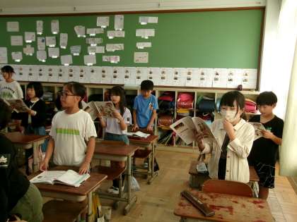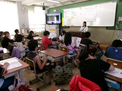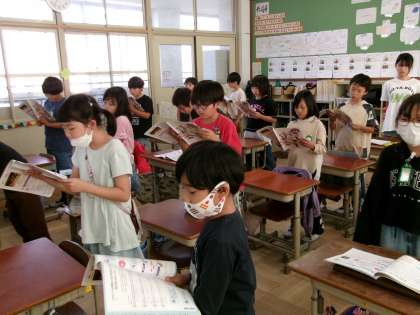 先生のきれいな範唱に続いて、子どもたちもきれいな声で歌っていました。旋律の重なりも感じとっていましたよ。