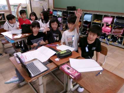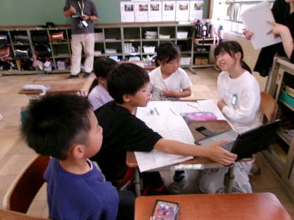 国語の「話す・聞く」の学習の様子です。とても活発に話し合い活動をしていました。参観に来た先生たちにいっぱい褒められていました。