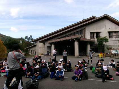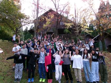 プログラムを15分遅らせたにもかかわらず、子どもたちは当初予定していた時刻に集合。教職員を待ってくれているほど早く行動していました。みんなで記念写真も撮りました。合言葉は「山のイエーィ!!」