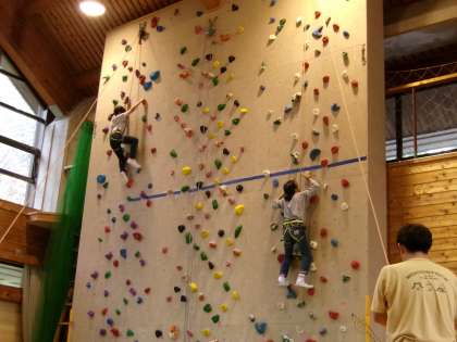 昼食後は,ボルダリングとクライミング。