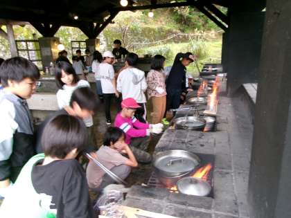 かまどに入れる火は、当然、火おこしでおこした火です。どんどん大きくなります。