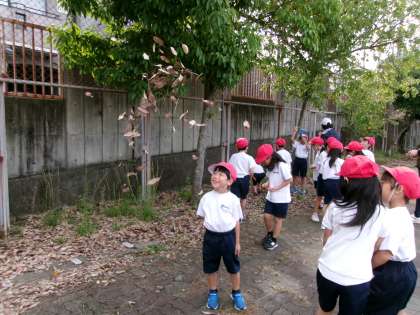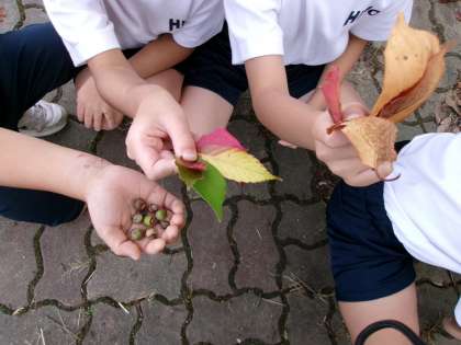 そのコスモスの近く、秋を見つけて楽しんでいる1年生がいました。また、生活科でも学習しましょう。