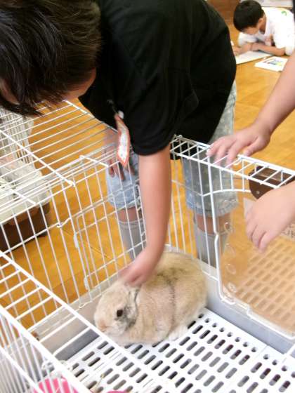 久しぶりに、きなことムーンが学校に来ました。1年生とふれ合って、いっぱい「かわいい!」と言ってもらっていました。