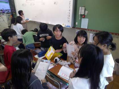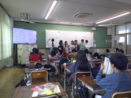 調べたことを全体で共有しました。ほかのチームは質問したり,みんなで考えたりできていました。新たな取り組みをしてみんなで越えていこうとする姿素敵です♪