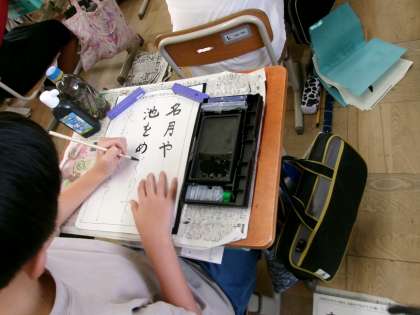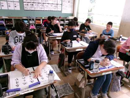 小筆でがんばって書いていました。子どもたちは、「先生。小筆難しい。」とつぶやいていました。