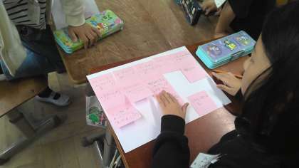 今日は食育の授業がありました。テーマは「大豆のみりょく」です。大豆って栄養がたくさんあって,いろんなものに変身するのです!