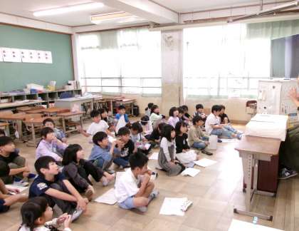 まなびの集いに向けて、お話をしているところでした。明日は、体育館で練習するそうです。
