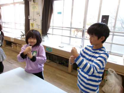 空気の体積は、温められるとどうなるのだろう。試験管とシャボン玉を使って実験していました。