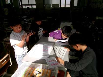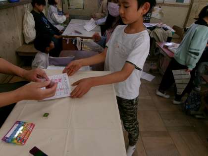 友だちに聞いてもらったり、先生に検定をしてもらったりしながら、九九の学習をがんばっていました。
