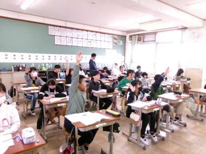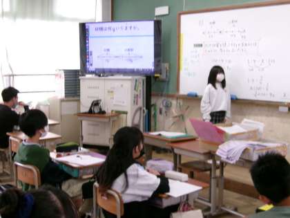 比の性質を使って問題を解いていました。比の値を使って、うまく問題を解いている児童もいました。