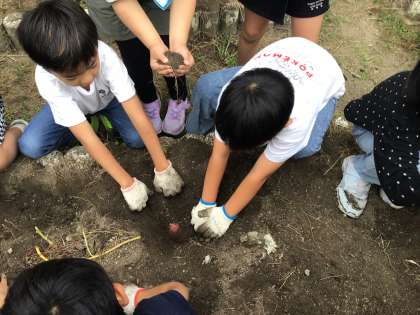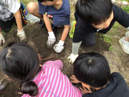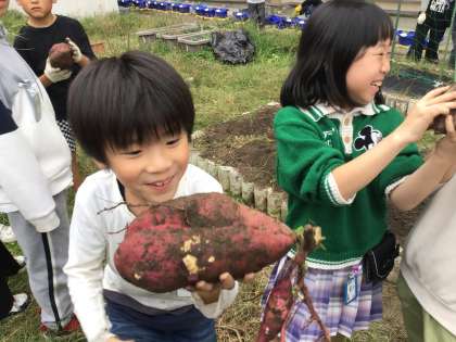 育てていたさつまいもを収穫しました。みんなで掘っていくと大きなおいもがたくさん出てきてびっくり!たくさん掘れてうれしそうにしていました。掘ったさつまいもは、まなびのつどいが終わってから、蒸かして食べようかと話をしています。まずは、まなびのつどい、がんばろう!!