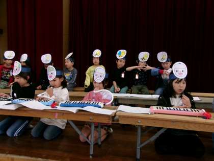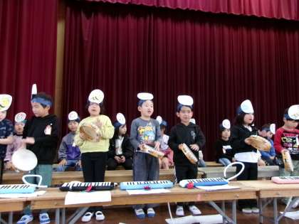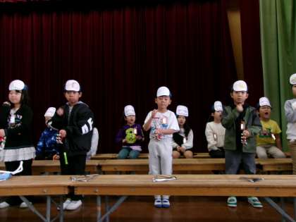 今日は、お面をつけて練習をしていました。セリフの練習もしていました。本番をお楽しみに。
