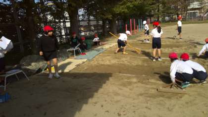 競技にもすっかり慣れて,係の活動もてきぱきと動いています。長い距離を跳ぶコツもつかんできたようで,お互いにアドバイスをし合っていました。