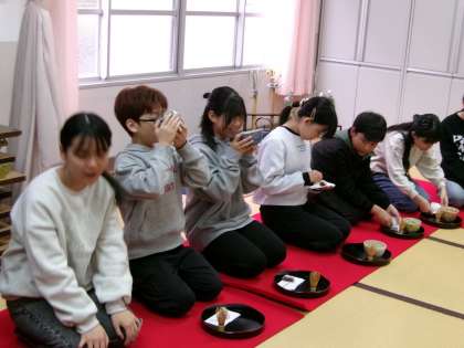 抹茶が苦手な子もいましたが、「おいしい」と喜んで、お菓子を食べたり、お茶をいただいたりしていました。茶道の先生のお話も聞き、伝統文化を体験できました。