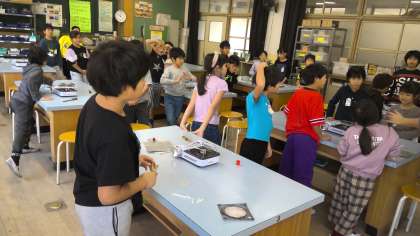 理科室を使って実験をさせてもらいました。ドキドキ,ワクワクの時間でした。