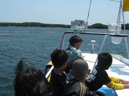 バスを降りたら,賢島港から船に乗って,みさきの家のなかよし港を目指しました。顔に当たる風が気持ち良かったです。