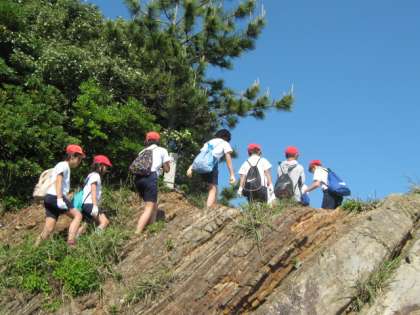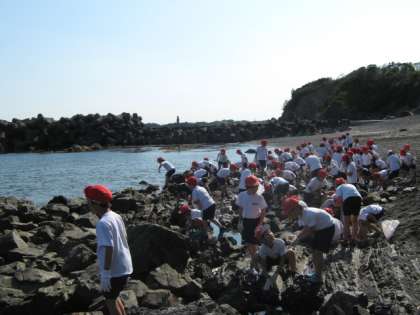入所式を終えたら,いよいよ磯観察です。この日は,お天気もよく,気持ちよく観察ができました。海水は,少し冷たかったけれど,たくさんの生き物を見つけることができました。