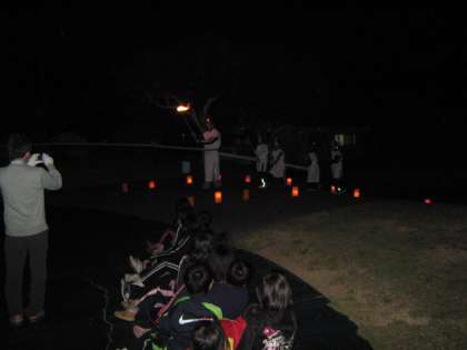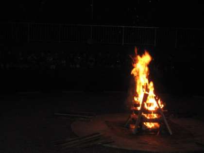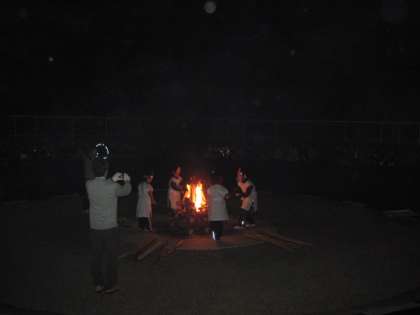 1日目の最後の大きな活動は,キャンプファイヤーです。みんなで,ゲームやダンスをして,盛り上がりました。空を見上げると,星がたくさん出ていて,とてもきれいでした。