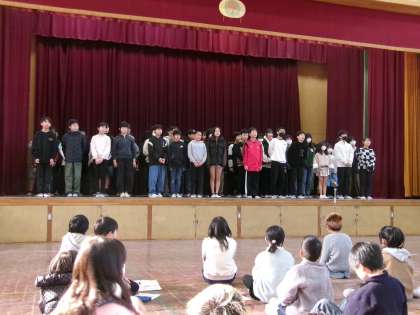 今日の朝会で、全校の前で日野人権宣言をしました。学級・学年で声を合わせて、宣言しました。