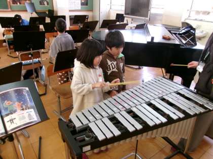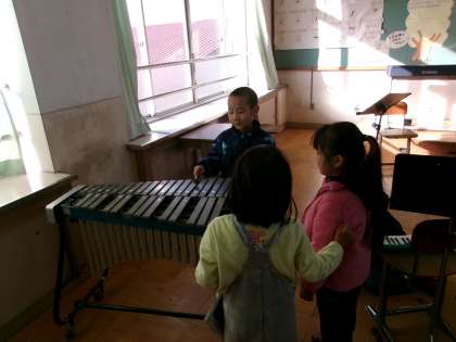 音楽室から、きれいな鉄琴の音が響いてきました。1年生がきらきら星を演奏していました。お星さまにぴったりの音でしたね。