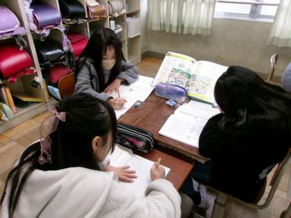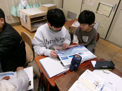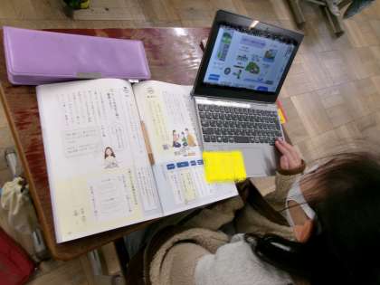 理由や例を挙げて、考えを文章にまとめる国語の学習です。関連図書やタブレットを使いながら、書く内容を考えていました。