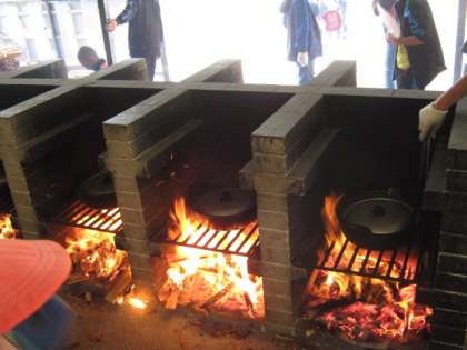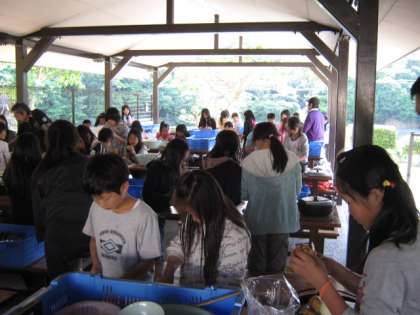 いよいよ野外炊事です。カレーを作りました。この日は,風が強く薪に火がつきやすく,火力は十分でした。どのグループも一生懸命,協力しておいしいカレーが出来上がりました。野菜もお肉も柔らかく,とてもおいしかったです。みんなモリモリおかわりをしました。