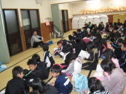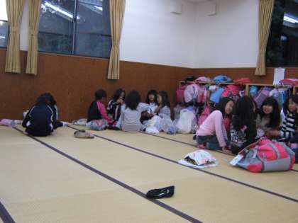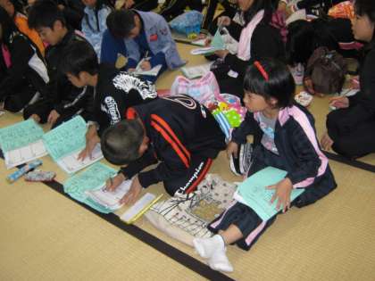 2日目の夜の反省会です。この日は,活動が多くてとっても疲れたようでした。でも,しっかりと,しおりに感想や反省を書き込んでいました。