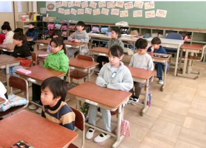 校長先生の「まとめの3学期にどんなことをがんばりますか?」というお話を聞き、子どもたちは今年どんなことをがんばるか考えていました。
