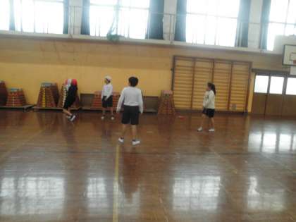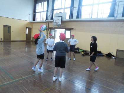 体育では久しぶりにソフトバレーボールの学習をしました。まずはチームでボールを回してボールに慣れ,そのあと簡単な試合形式を行いました。