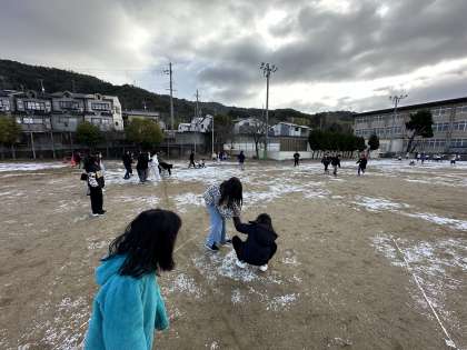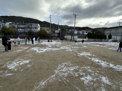 運動場は雪で少し白くなり,少しの雪合戦を行えたような気がします・・・