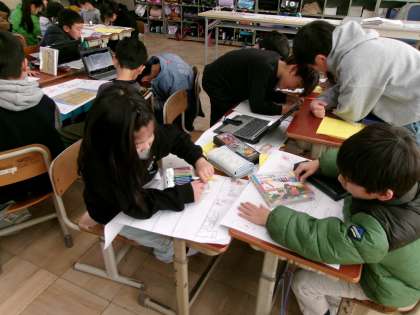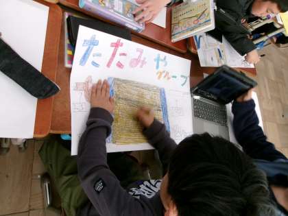 まちたんけんに行って気付いたことなどを班でまとめていました。発表もするみたいです。楽しみですね。