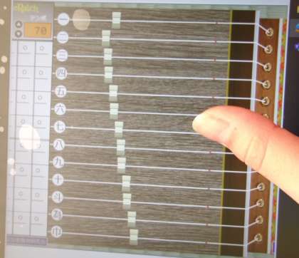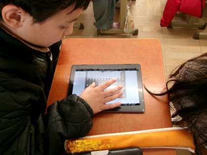 タブレットで箏の学習シミュレーター「KotoRatch」を使って学習をしていました。調弦(チューニング)もボタン一つでできて、便利だったそうです。