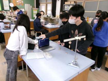てこがつり合うときには、どんなきまりがあるのか?実験をしながら、探っていました。
