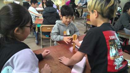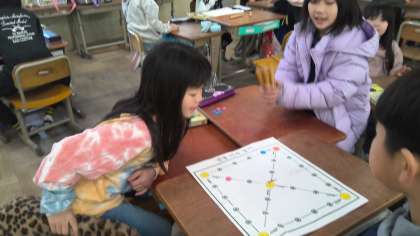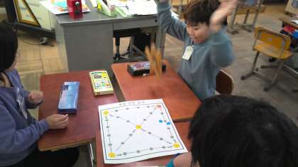 その中で,「ユンノリ」は,すごろくと似ている。でも,さいころを使わずに,「ユッ」という棒を使うことが違う。など,日本と似ている点や違う点にも気づいたようです。