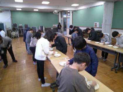 給食委員会の取り組みの「豆つかみ大会」に5年生全員で参加しました。なかなか難しい・・・。とても大盛り上がりでした♪