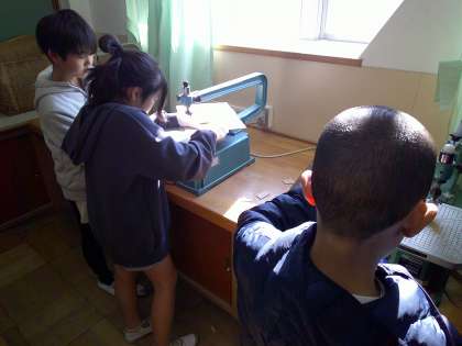 図工室での活動に入りました。初めてさわる電動糸のこぎりを体験してから作業していました。集中して取り組んでいました♪